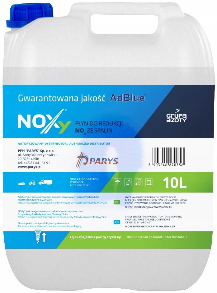 Płyn katalityczny do diesla AdBlue Noxy 10 litrów GRUPA AZOTY +LEJEK GRATIS