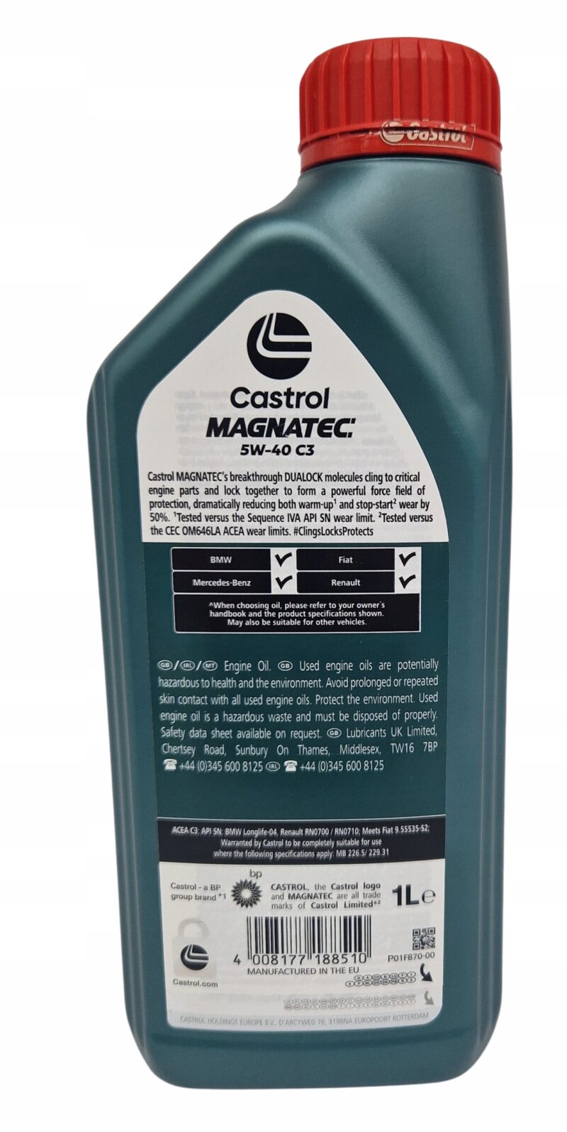 Castrol Magnatec 5W40 C3 to syntetyczny olej silnikowy przeznaczony do samochodów benzynowych i diesla. Niska zawartość popiołów, siarki i fosforu sprawia, że Castrol 5W40 z normą C3 jest odpowiedni do silników wysokoprężnych wyposażonych w filtr cząstek stałych. Dodatki uszlachetniające wraz z formułą DUALOCK gwarantują odpowiednie smarowanie silnika w każdych warunkach pracy. Chronią silnik od momentu startu. Nie pozostawiają szkodliwych osadów i nagarów, przez które moc silnika spada nawet o 10%. Olej Castrol Magnatec 5W40 jest odpowiedni szczególnie w ruchu miejskim. Odpowiedni do jednostek napędowych z systemem Start-Stop, w których dobry olej jest sprawą pierwszorzędną.