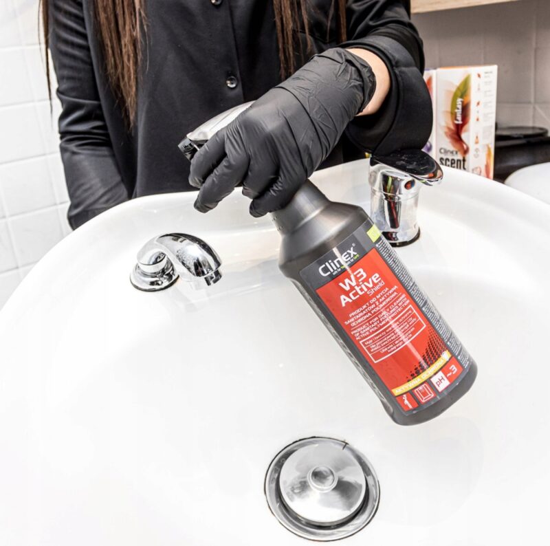 Clinex W3 Active Shield skutecznie usuwa rdzawe i kamienne nacieki, brud, osady wapienne i mydlane. Nowoczesna formuła preparatu została wzbogacona o polimery, które opóźniają efekt ponownego osadzania się brudu oraz ułatwiają proces kolejnego mycia. Produkt posiada Świadectwo Jakości Zdrowotnej wydane przez PZH. To profesjonalny środek do usuwania kamienia z kabiny prysznicowej, który świetnie poradzi sobie z usuwaniem osadów mydlanych.