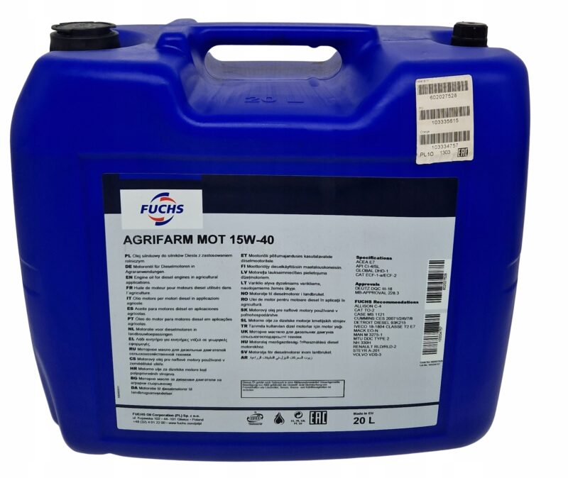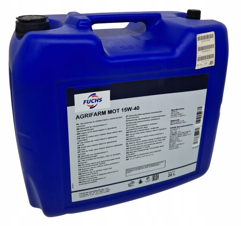 AGRIFARM MOT SAE 15W-40 jest olejem silnikowym typu SHPD przeznaczonym do silników wysokoprężnych z i bez turbodoładowania w maszynach rolniczych oraz pojazdach użytkowych, gdzie duże znaczenie ma wewnętrzna czystość silnika i ochrona przed zużyciem przy wydłużonych przebiegach pomiędzy wymianami. AGRIFARM MOT SAE 15W-40 spełnia wymagania, zarówno europejskich, jak i amerykańskich producentów silników.