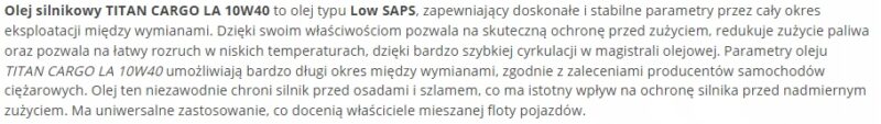 Najwyższej jakości, redukujący zużycie paliwa, olej silnikowy opracowany do pojazdów użytkowych z nowoczesnymi systemami oczyszczania spalin i turbodoładowaniem. Zapewnia dobre parametry odnośnie rozruchu w niskich temperaturach jak i małe zużycie oleju.