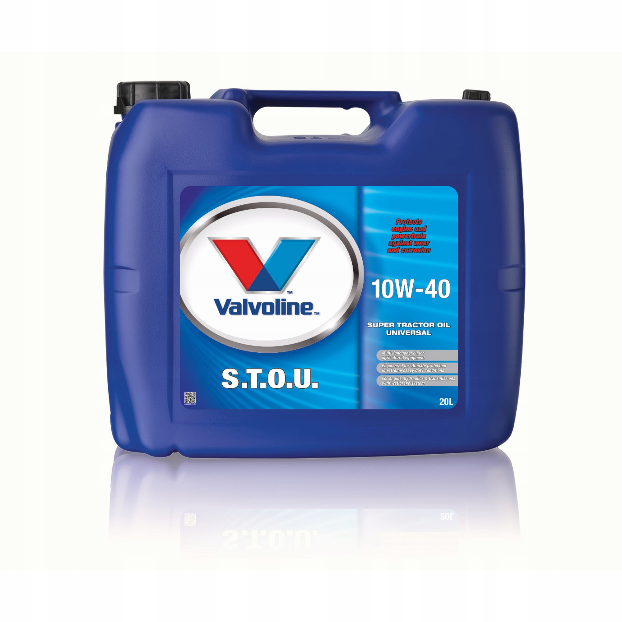 Valvoline STOU to najwyższej jakości uniwersalny olej spełniający wymagania dotyczące smarowania silników wysokoprężnych z turbodoładowaniem i bez, skrzyń biegów, przekładni, mechanizmów różnicowych i przekładni, układów hydraulicznych oraz ciągników z mokrymi układami hamulcowymi.