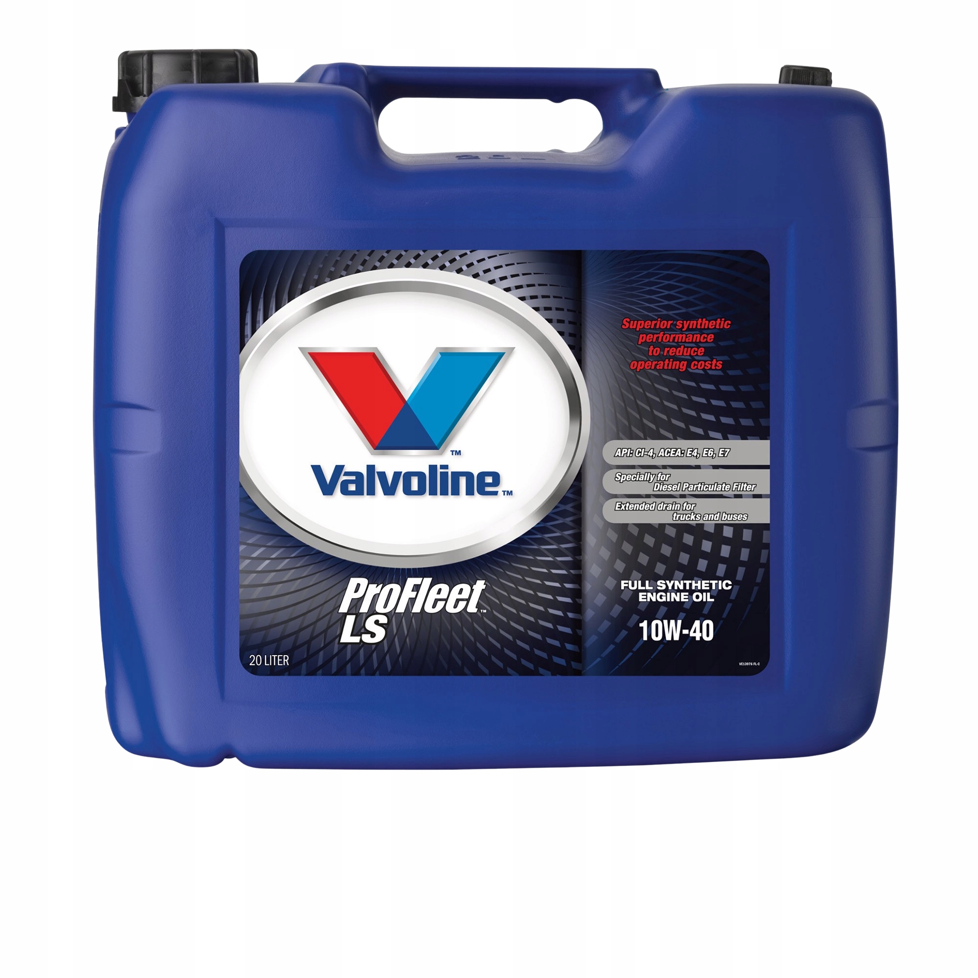 Olej silnikowy ProFleet LS Engine Oil SAE 10W-40 to w pełni syntetyczny olej silnikowy najwyższej klasy, zaprojektowany w celu spełnienia wymagań tzw. norm Euro, obowiązujących w Unii Europejskiej. Spełnia rekomendacje UHDP czołowych producentów silników. Unikalna formuła zapewnia niższą zawartość popiołów siarczanowych, fosforu oraz siarki, aby chronić najnowsze układy obróbki spalin, takie jak układ recyrkulacji spalin (EGR), układ selektywnej redukcji katalitycznej (SCR) oraz filtry cząstek stałych (DPF).